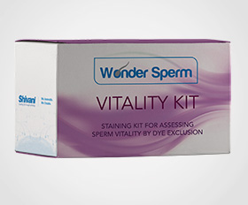 Sperm membrane integrity and thereby, sperm vitality is an important aspect to be assessed. It is especially in samples with severely compromised sperm parameters like membrane integrity which affects the fertilization potential of sperm and hence the assessment of sperm vitality is of great importance. The Wondersperm Vitality Kit, with its combined Eosin-Nigrosin solution allows rapid assessment of sperm viability.